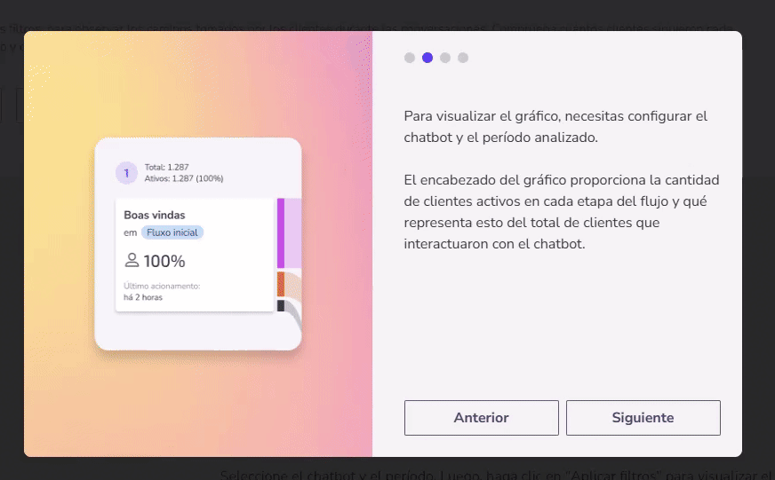 Imagen 1: El encabezado muestra el número de clientes activos en cada etapa del flujo y lo que representa en relación con el total de clientes que interactuaron.